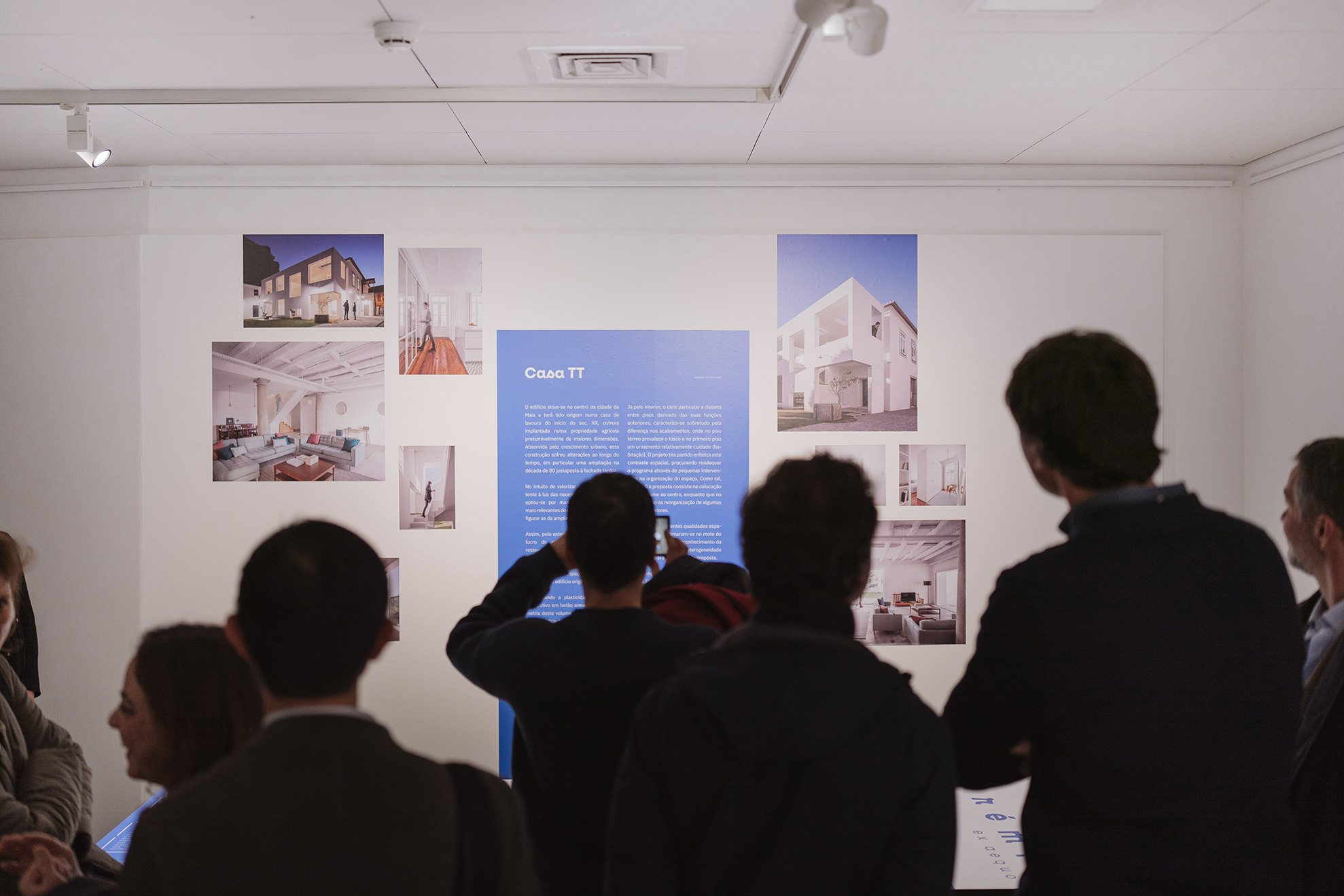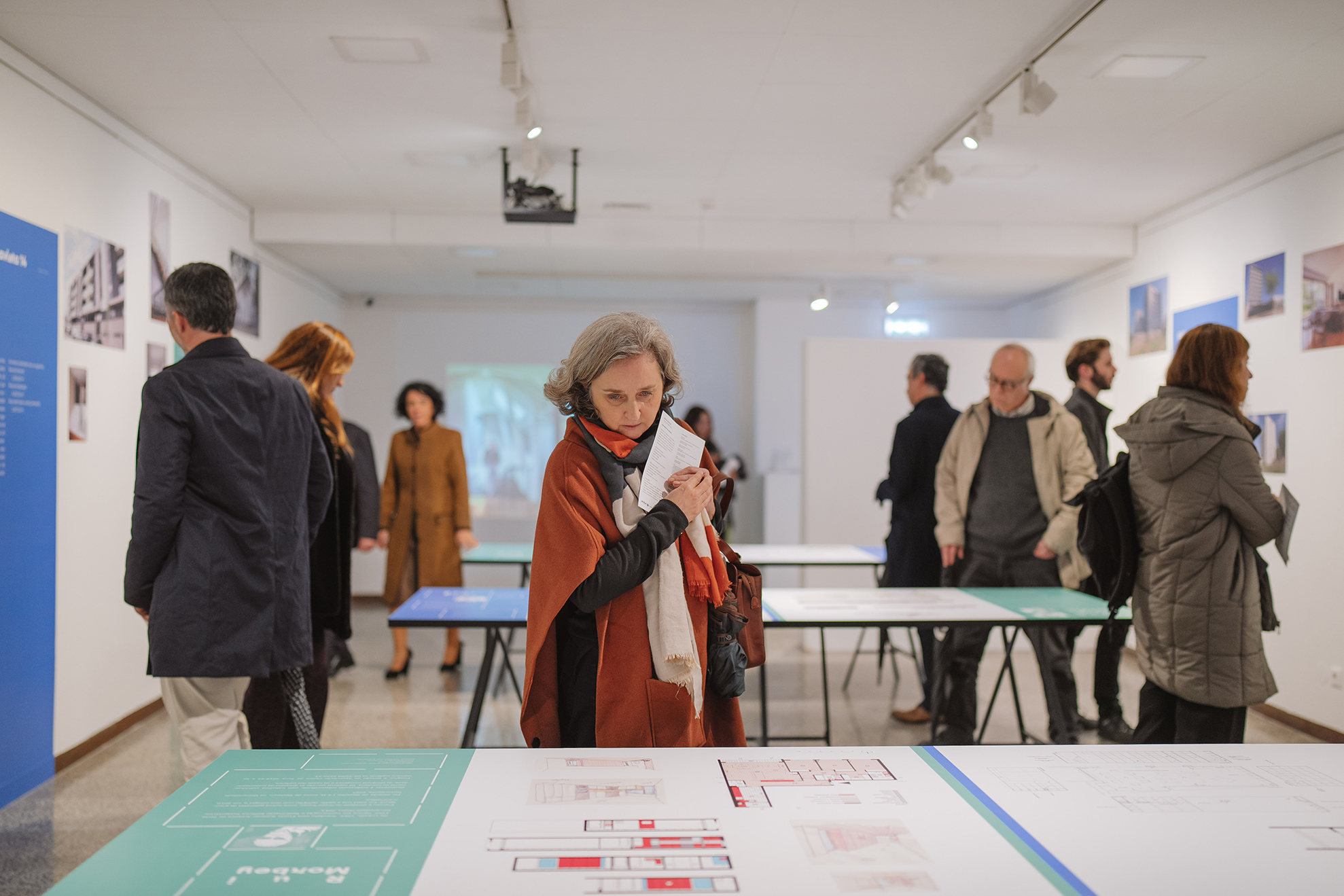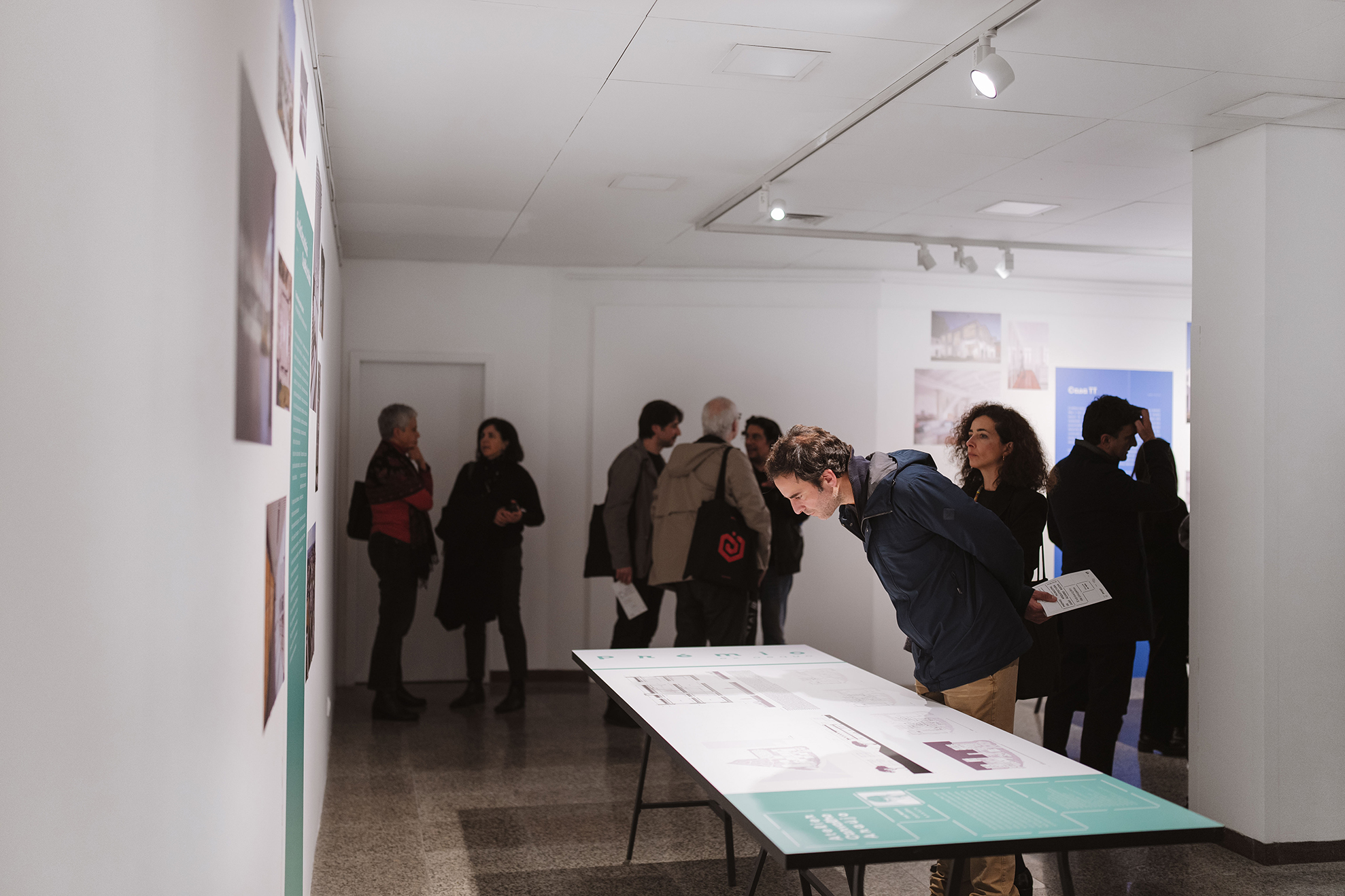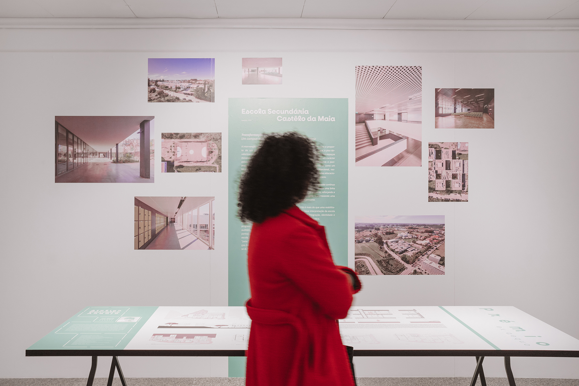 Cada projeto tinha uma mesa expositiva com a biografia do/a arquiteto/a, ficha técnica e desenhos. Nas paredes, fotografias das obras acompanhadas da respetiva memória descritiva, compunham o espaço expositivo.